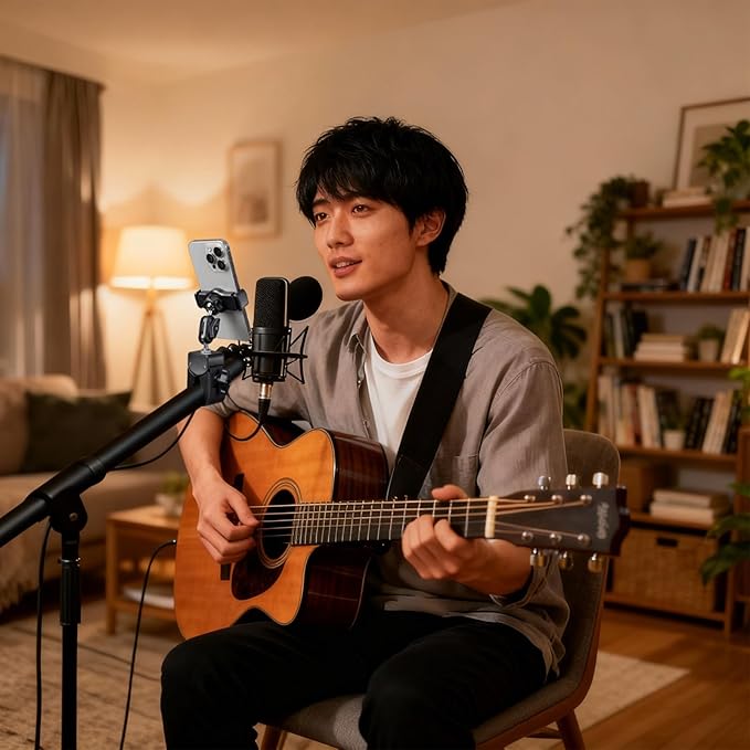 幅広い互換性: このマイクスタンド用スマホホルダーは工具不要で簡単設置が可能。4.7-7インチのスマートフォンに対応し、iPhone 17/16/15/14/13/12, XR, X, XS Max, Pro, Plus、Samsung GalaxyS32/S22/S21/Noteシリーズなど主要機種をしっかり保持。両手が解放でき、歌詞配信・動画収録・ライブ配信に最適です。
