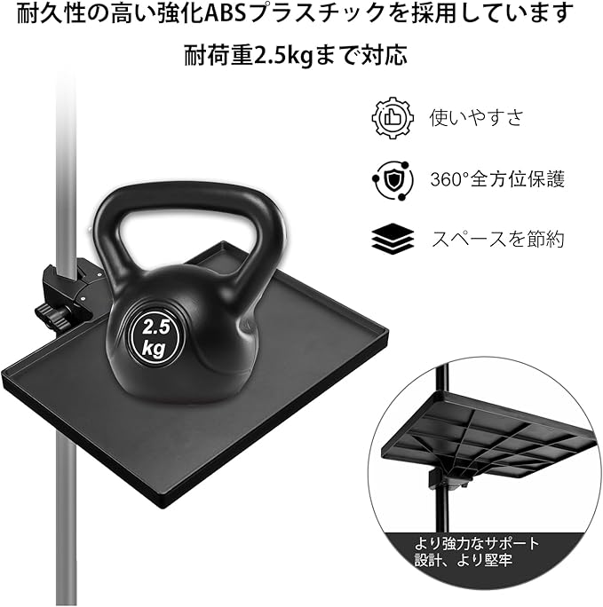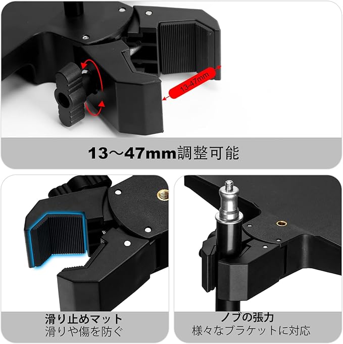 【頑丈な構造】このマイクスタンドトレイは、ポール直径13~47mm ほとんどのマイクスタンドにしっかりと取り付けられる硬質ABSカニクランプを備えています。 ほとんどのマイクスタンド/楽譜スタンド/スピーカースタンド/自撮りライトスタンド/電話三脚用。