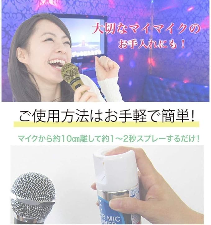 スプレーするだけでマイクロフォンのヘッドに付着した雑菌やいやな臭いを除菌・消臭します。