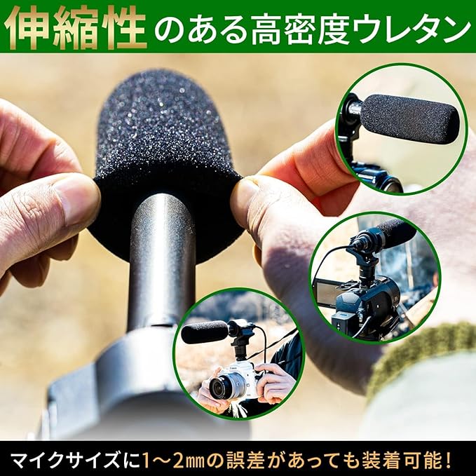 サイズ】高さ12cm、幅3.5cm 内径2㎝ 深さ11cm(伸縮性のあるスポンジなので1~2mmのサイズ誤差があっても広げて装着する事ができます。)【内容品】GONKISS マイクスポンジ 2本【色 】黒