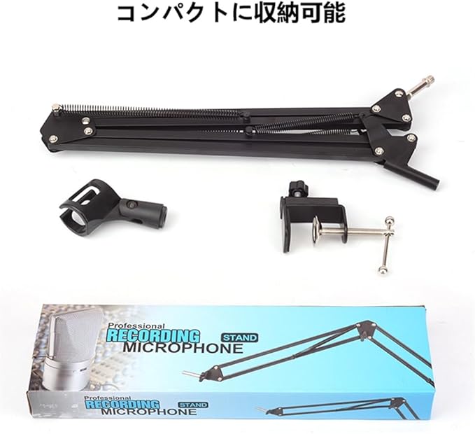 マイクスタンド デスクアーム式 マイクアーム 卓上 マイクアームホルダー 360 回転 角度調節 伸縮 折り畳み可能 コンデンサーマイク用 ダイナミックマイク用 収録 配信 実況 生放送 カラオケ 卓上マイクスタンド