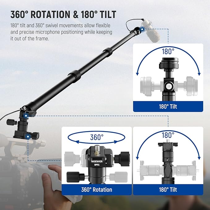 【簡単な長さ調整】調整可能なブームポールは3つ伸縮セクションとスムーズなツイストロックを備え、44cm-92cmまで伸縮可能で、様々な撮影環境に対応します。ご注意: 調整後はツイストロックをしっかりと締め、ケーブルが引っ込まないようにしてください。