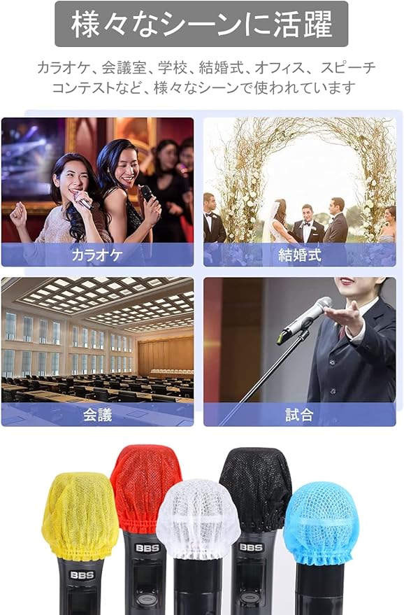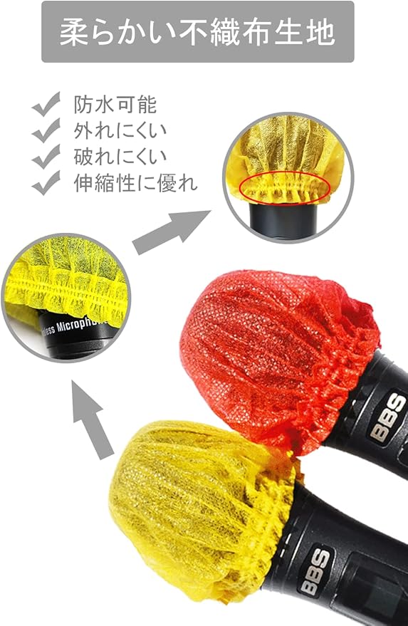 【素材】不織布で作られており、破れにくくて伸縮性があり、ほとんどのマイク(U型・O型)に取り付けできます。