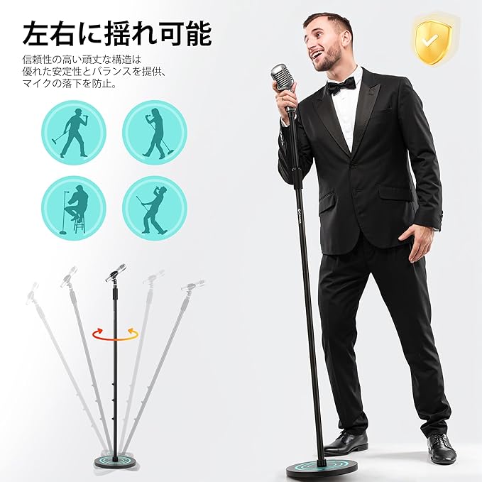 【優れた安定性】このマイクスタンドのベースは頑丈で、重量は3230gです。ベースにアップグレードされた固定ループもあり、スタンドは安定し、動きにくいです。それに、スタンドの底部に滑り止めパッドも付きで優れた安定性とバランスを提供します。