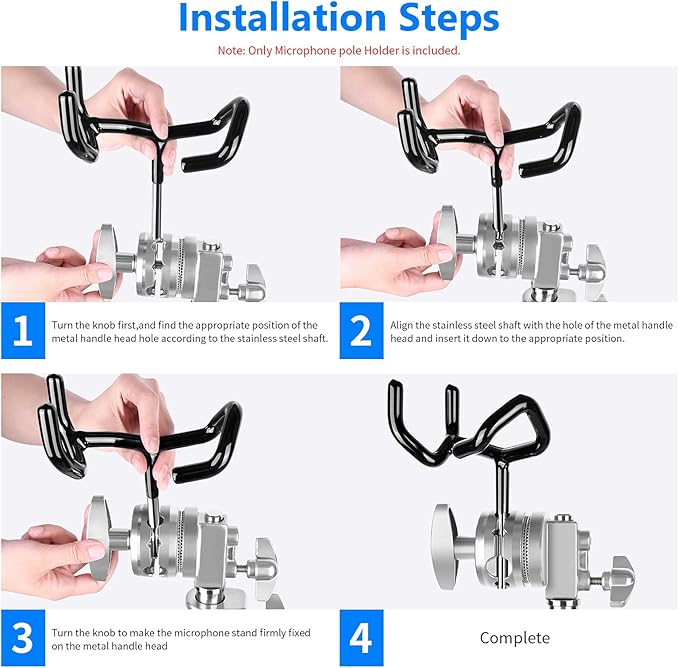 ハンズフリーポジショニング:このマイクブームホルダーを使用して、マイクブームをCスタンドまたはマイクス タンドに取り付けて、簡単でハンズフリーのマイクポジショニングを実現します。