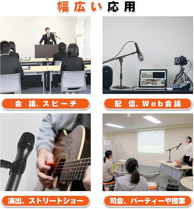 【多機能&幅広い応用】EMARTのマイクスタンドは3/8-5/8インチネジ付き、様々なマイクを互換性があります。収録、配信、レコーディング、Skype、授業、講演 等に最適です!生配信、レコーディング、カラオケ、YOUTUBE、ギター、ドラム、ピアノ、自宅レコーディング、宅録など多様にシーンでも対応できます