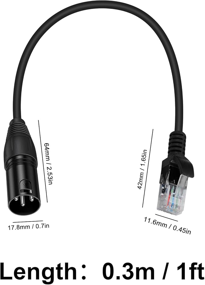Poyiccot XLR DMX ケーブル 短い、 XLR to RJ45 ケーブル、DMX 3ピン XLRオス-RJ45オスケーブル XLRコネクタ、RJ45-3ピンXLRアダプタ CAT5延長 DMX-CONコントローラーシリーズ用, 30cm