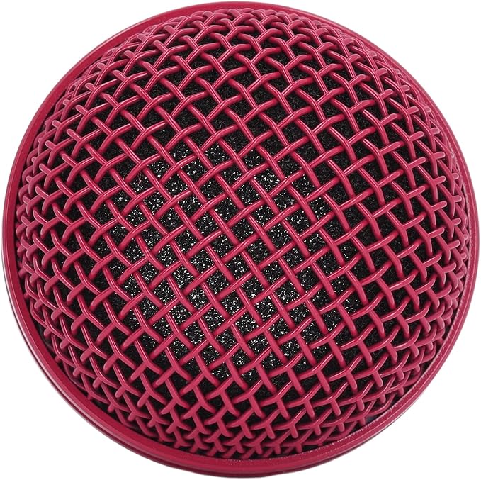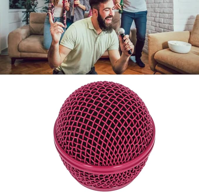 SOCOCO SM58Sマイク用のフォームフロントガラスを備えたステンレススチールグリルの交換用ボールのヘッド、マイクヘッド用のバンピレジスタントプロテクター (ローズレッド)