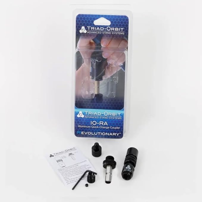 IO-RAは他メーカーのスタンドにTRIAD-ORBIT製品を装着可能にするアダプターです(ネジ径5/8インチ、3/8インチのスタンドに取り付け可能。)。