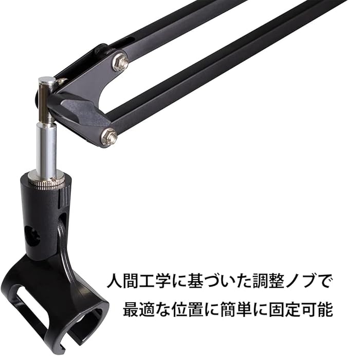 可動域が広く、耐荷重も 1.9kg あり多種のマイクに対応します。
