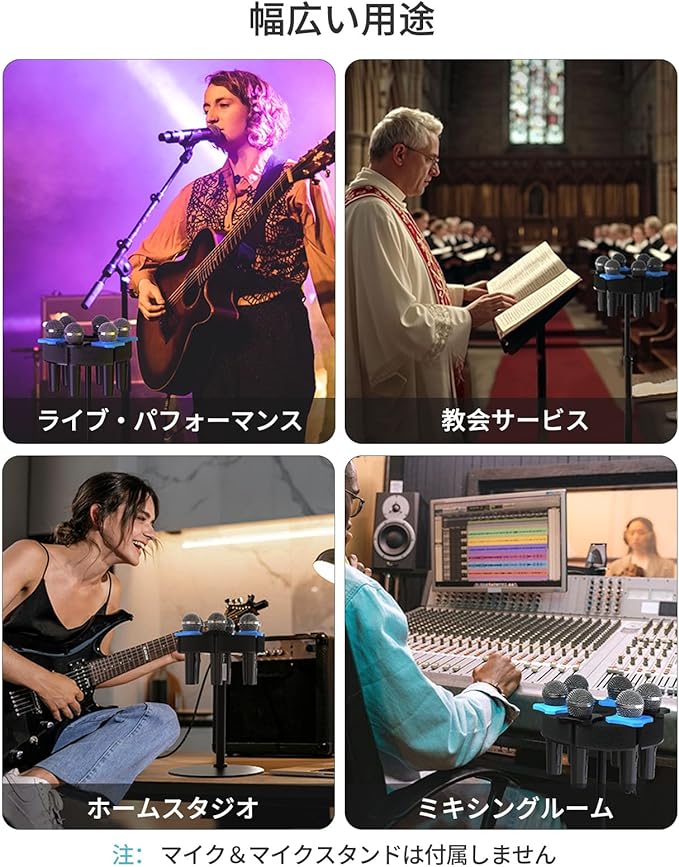 【多用途に対応】パフォーマンス、ホームスタジオ、教会、プロレコーディングに最適です。ダイナミック、有線・ワイヤレスのハンドヘルドマイクを 2 本まで安定して保持でき、ミュージシャン、教会サービス、DJ、カラオケ愛好家に理想的です。
