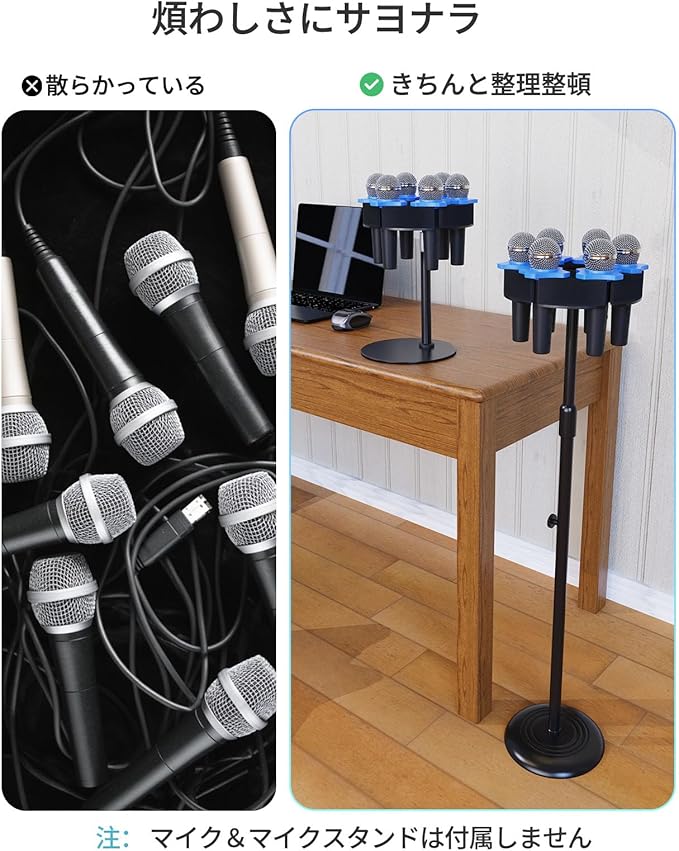 マイクホルダー マイクフックスタンドブラケット ホームオフィス用 有線・ワイヤレス/ハンドヘルド・ダイナミックマイク用 (最大6本対応) ブラック