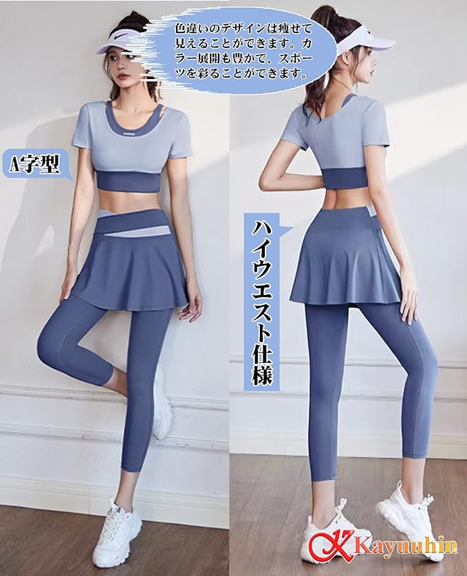 [Kayuuhin] スポーツウェア レディース 上下セット ヨガウェア トップス スポーツブラ 速乾性 カップ付き レギンス ストレッチ ヨガパンツ おしゃれ 通気性 伸縮性 快適な動き | A GEN STORE