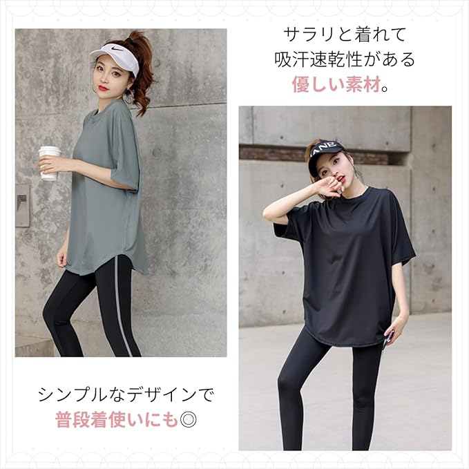 [VEROMAN] ヨガウェア レディース トップス 体型カバー Tシャツ ロング丈 ピラティス ppi-ssd028 | A GEN STORE
