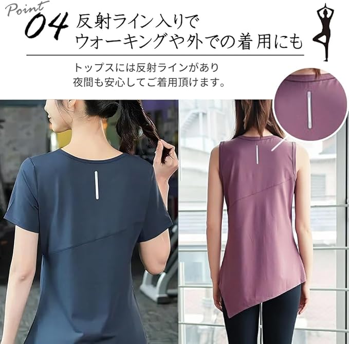 [Sokure] エアーをまとうエアリーヨガウェア フワっサラっアシンメトリー効果で美脚際立つ 上下セット ヨガウェアセット スポーツウェアセット