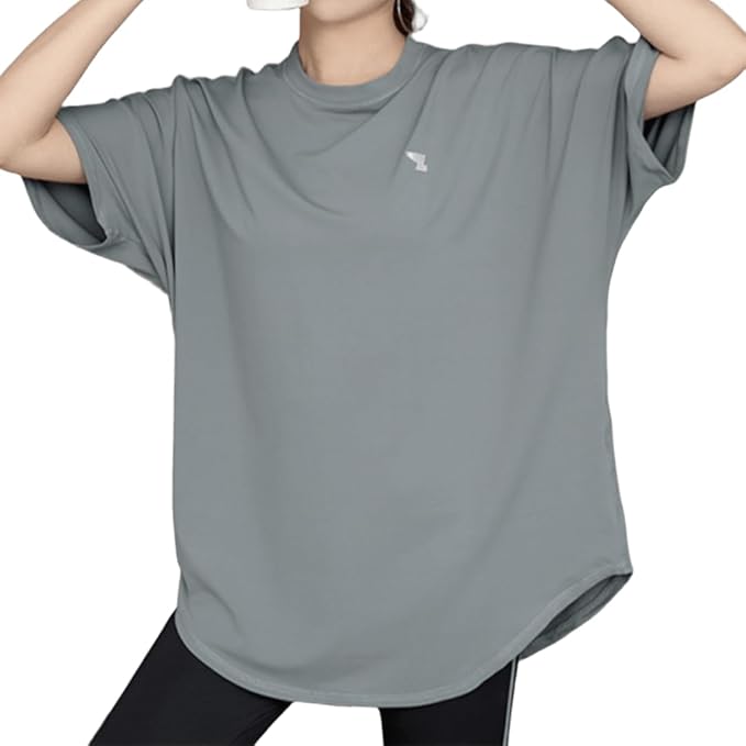 [Finalis] ヨガウェア トップス レディース ピラティス スポーツ フィットネス ホットヨガ ジム Tシャツ 速乾 上 体型カバー ロング丈 5分袖 ゆったり はだけない ムレない 華奢