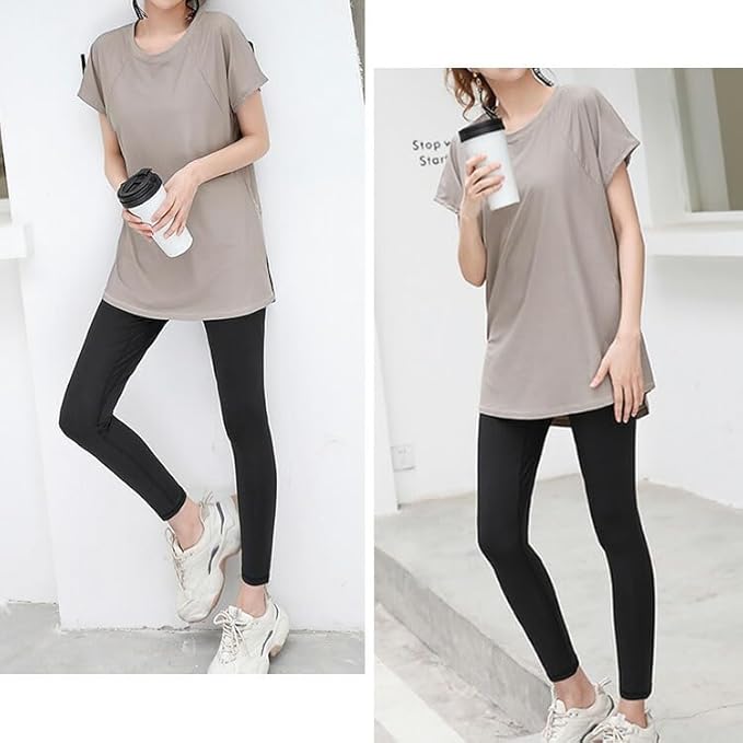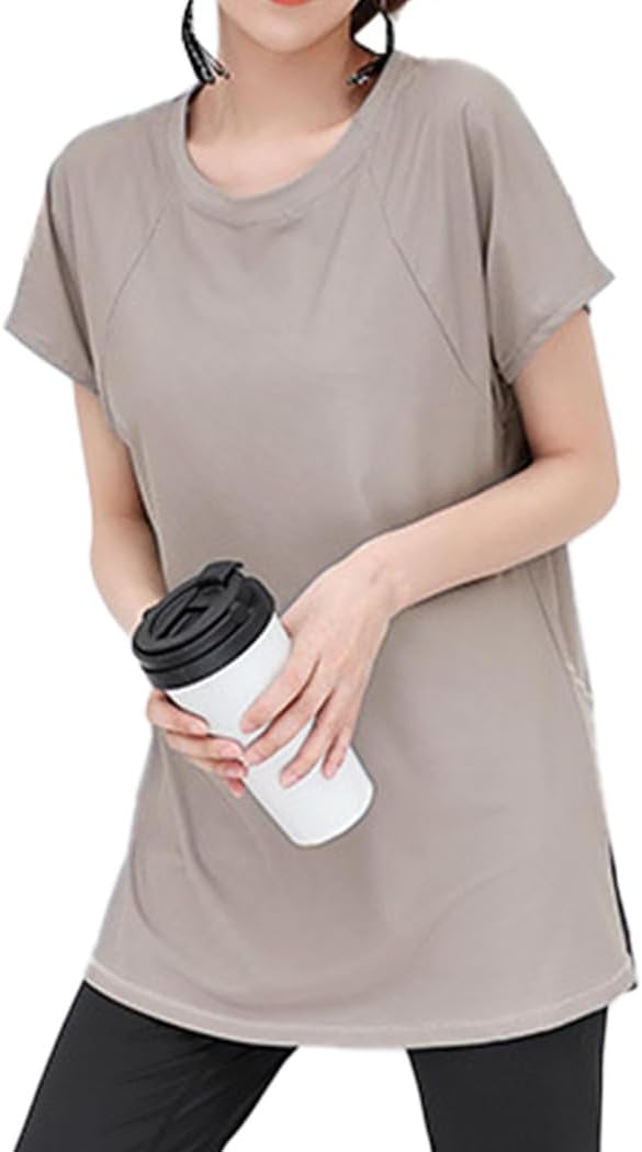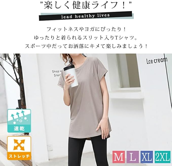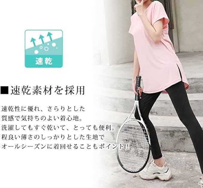 [DAYCLOSET] ヨガウェアトップス ヨガtシャツ レディース 半袖 体型カバー 速乾 薄手 丈長め 伸縮性 ゆったり yoga125