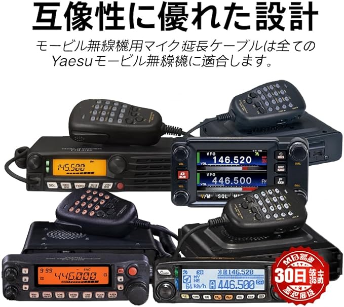 優れたパフォーマンス 高純度無酸素銅(OFC)コアを採用し、優れた導電性とノイズ耐性を実現。外来干渉を効果的に抑え、クリアで安定した音声品質を提供します。長距離通信でも音の劣化を最小限に抑えます。 信頼性の高いコネクター構造 一般的な圧着タイプとは異なり、コネクター部を成形プラスチックで強化。しっかりとしたフィット感と耐久性を確保し、モービル無線機への確実な接続を実現します。 柔軟なリーチ延長 一般的なマイクケーブルの長さ制限を解消。2m(6.5ft)と5m(16.4ft)の2タイプから選択可能で、車載運用から固定局まで柔軟に対応します。 幅広い互換性 YAESU(八重洲無線)FT-7900/FT-8800/FT-8900、TYT TH-9800D PLUSなどの6P6C RJ12コネクター搭載機種に対応。その他のアマチュア無線・モービル無線システムにも使用可能です。 日本ユーザーのための信頼設計 日本のアマチュア無線愛好家のニーズを考慮して設計。優れた音質と耐久性を両立し、日常の交信から移動運用まで長く安心してご使用いただけます。