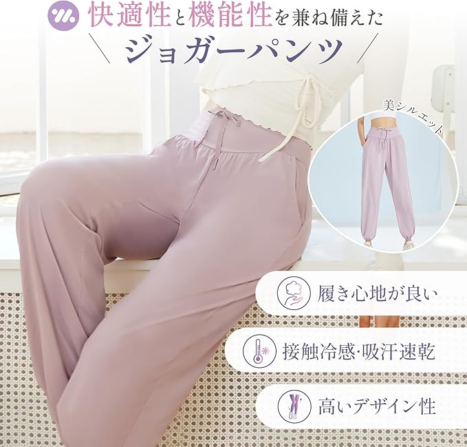 [Yomoment] ヨガパンツ レディース ゆったり 接触冷感 夏 吸汗速乾 動きやすい ストレッチ スウェットパンツ ジョガーパンツ ヨガウェア 下 トレーニング ランニング ハイウエスト おしゃれ 美脚 伸縮性 通気 UVカット 快適 | A GEN STORE