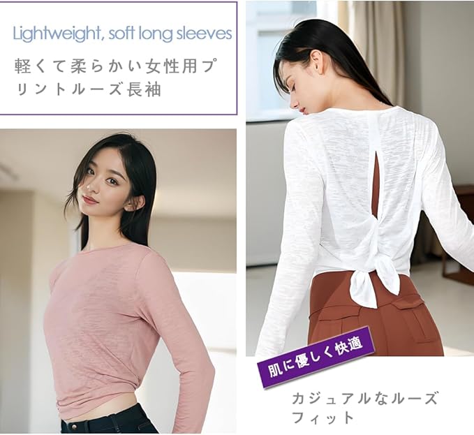 [Siomlana] 背中おしゃれ ヨガウェア 長袖 涼しい スポーツ シャツ レディース トップス ングtシャツ ピラティス 長袖ウェア おしゃれ 美背 ゆったり ストレッチ 吸汗速乾 通気性 やや透け感 シンプルデザイン ジム ランニング フィットネス | A GEN STORE