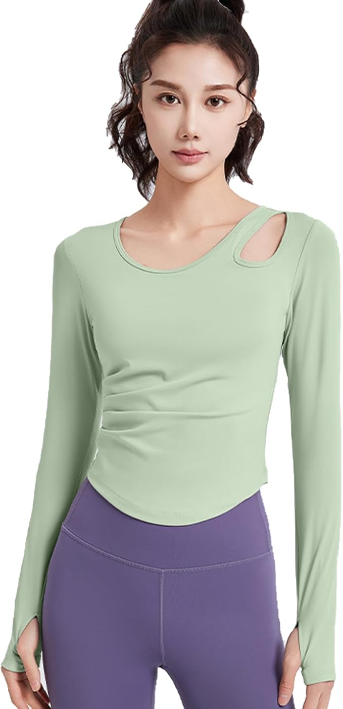 [Karsaer] ヨガウェア レディース 長袖 トップス カップ付き 指穴付き Tシャツ ストレッチ スポーツウェア 体形カバー 吸汗 速乾 通気 揺れない フィットネス トレーニング ヨガ プルオーバーA0067 | A GEN STORE