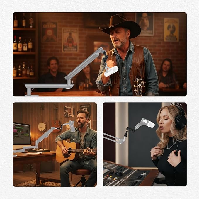 【幅広い互換性】マイクマウントには、上部に1/4"ネジ、下部に5/8"ネジが付属し、1/4"-5/8"変換アダプターも付属しているため、ほぼすべてのマイク、マイククランプホルダー、ブームアームマイクスタンド、その他の撮影用アクセサリーに取り付けられます。