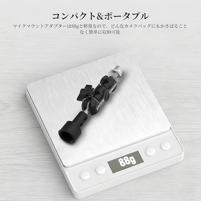 【コンパクトで持ち運びに便利】マイクスタンドアダプターは、寸法12.1x3.6x2cm、重量88gで、オーディオキットやカメラバッグにすっきり収まり、かさばりません。コンテンツクリエイターやインフルエンサーにとって必要なアイテムとして最適です。