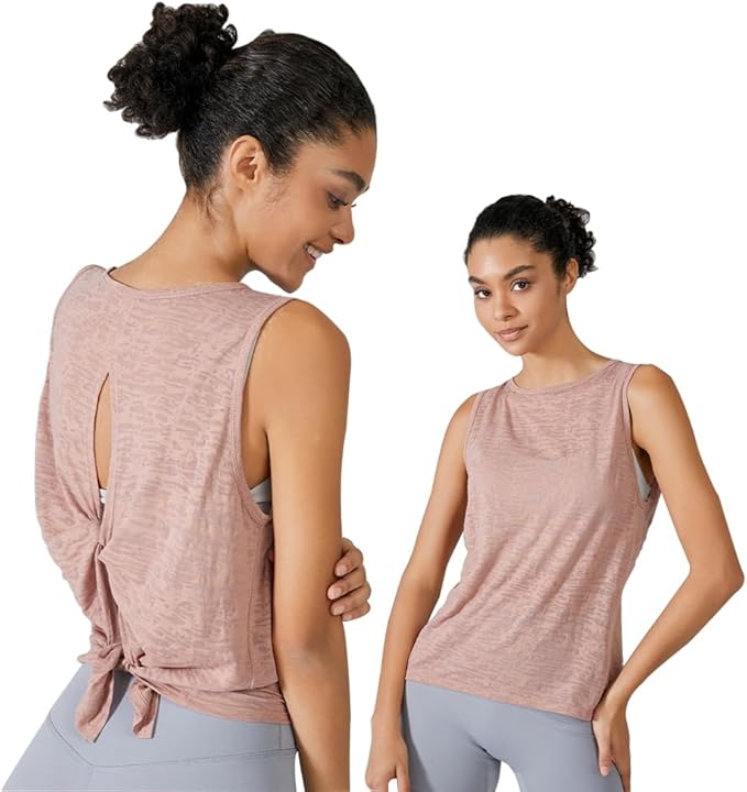 Yodilala ヨガウェア レディース ノースリーブタンクトップ 美背中デザイン ゆったりトップス 体型カバー 冷感ルーズフィットトレーニングTシャツ ロング丈 クルーネック 無地 半袖 ロングゆったりシルエット スポーツ ルームウェア フィットネス トレーニング 吸汗速乾 UVカット