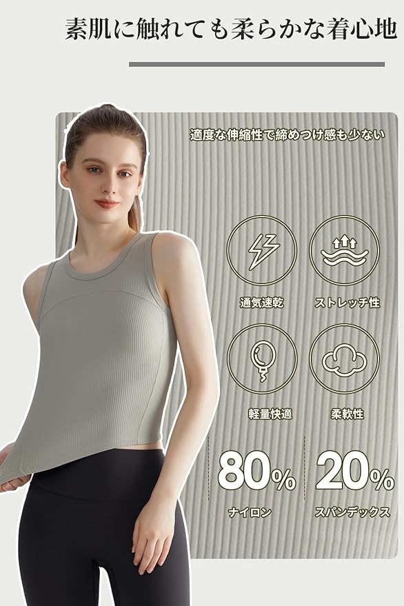 [MORGEN SKY] タンクトップ カップ付き レディース スポーツ ブラトップ ヨガウェア トップス 通気速乾 フィットネス トレーニング ジム 無地 リブ おしゃれ 重ね着 BX035