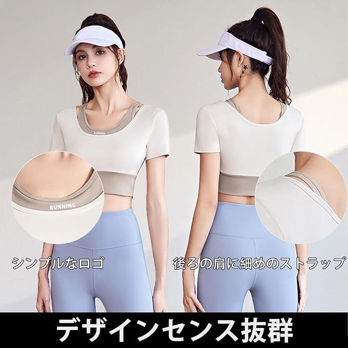 [MORGEN SKY] ヨガウェア スポーツウェア レディース トップス 半袖 スポーツブラ フィットネスウェア カップ付き ショート丈 テニス ゴルフ ジム 揺れない フィットネス トレーニング ランニング ストレッチ 通気 速乾 おしゃれ YD035