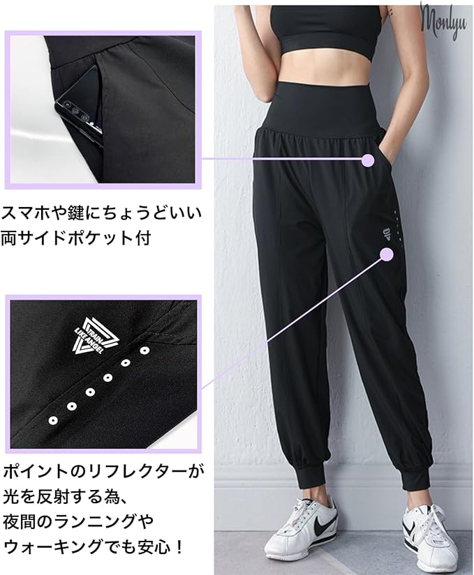 [Monlyu] ヨガパンツ レディース ゆったり ヨガウェア ランニング トレーニング ダンス フィットネス パンツ スポーツウェア ロングパンツ ウェア 吸汗 吸湿 速乾 美脚 体型カバー