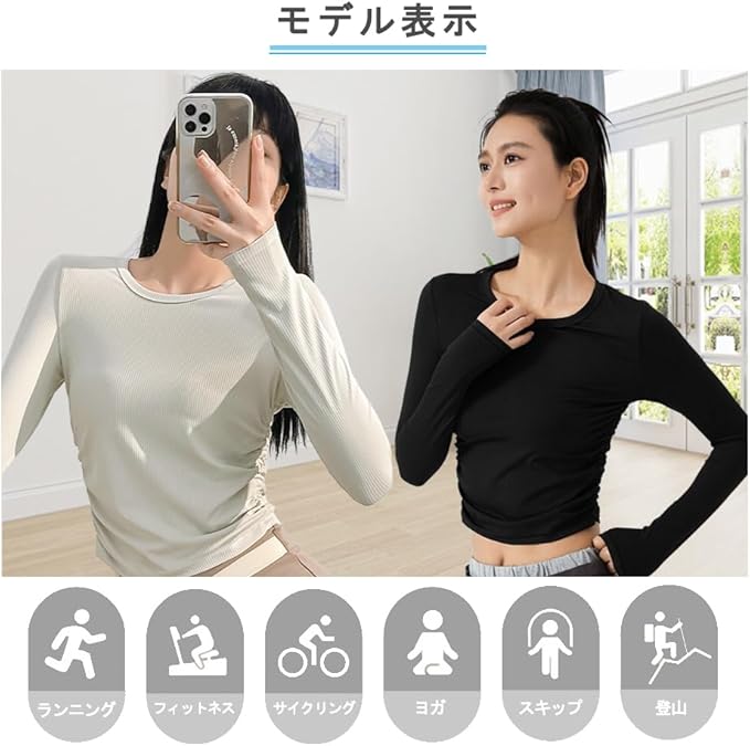 [Siomlana] ヨガウェア トップス スポーツ シャツ レディース 長袖 ピラティスウェア 部屋着 ングtシャツ レディース 丸首 スポーツウェア ジム トレーニング ストレッチ 快適 おしゃれ サイドプリーツ 春秋 通気 | A GEN STORE