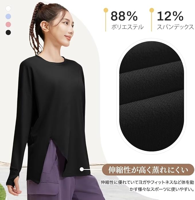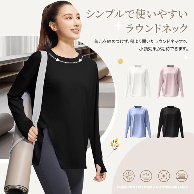[Muxuryee] ヨガトップス レディース 長袖 吸汗速乾 ゆったり 軽量 ストレッチ UVカット ヨガウェア Tシャツ ピラティス ダンス トレーニング スポーツウェア | A GEN STORE