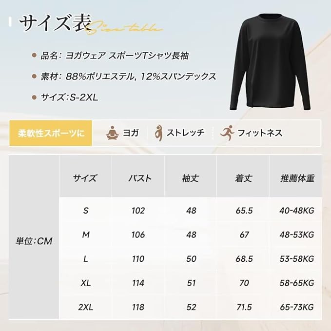 [Muxuryee] ヨガトップス レディース 長袖 吸汗速乾 ゆったり 軽量 ストレッチ UVカット ヨガウェア Tシャツ ピラティス ダンス トレーニング スポーツウェア
