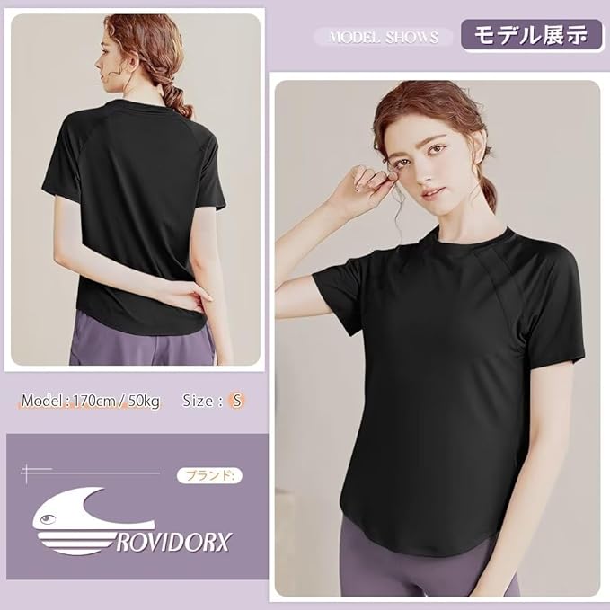 [Rovidorx] ヨガウェア トップス 半袖 tシャツ レディース スポーツ 大きいサイズ スポーツウェア ゆったり ピラティスウェア ジムウェア トレーニングウェア ランニングウェア 体形カバー UVカット 速乾