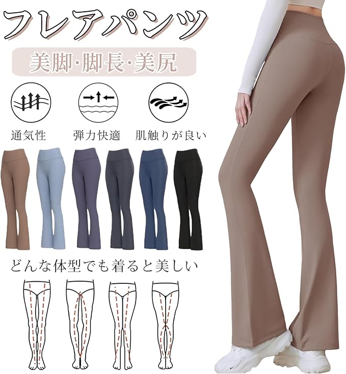 [Senteria] ヨガパンツ フレアレギンス レディース 足長 細見え 美尻美脚 おしゃれ ヨガ スポーツウェア ブーツカット ぴったりフィット 超伸縮 ハイウエスト 無地 ダンス フィットネス ピラティス トレーニング ストレッチ 吸汗速乾 快適 着痩せ