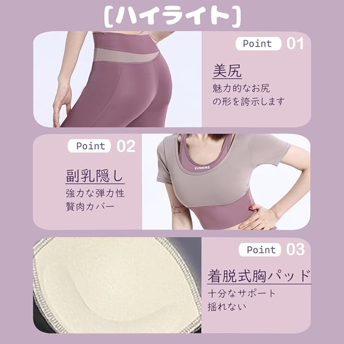 [Akihee] ヨガウェア 上下セット レディース 揺れない スポーツウェア カップ付き おしゃれ 夏 かわいい 通気性 伸縮性 トレーニング ハイサポート 快適な動き 吸汗速乾 ジムウェア