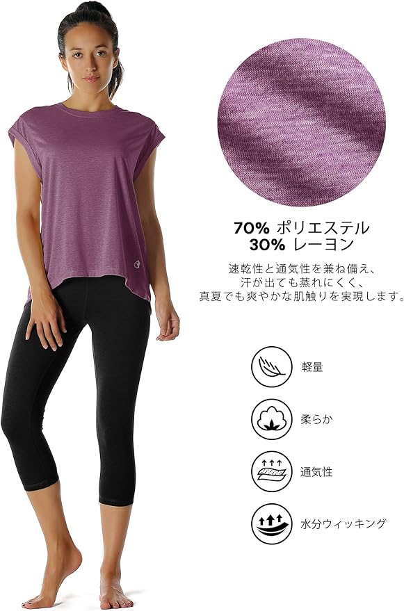 [icyzone] ヨガウェア レディース Tシャツ スポーツウェア ルーズフィット オープン バック 半袖 通気 カジュアル フィットネス アスレチック 大きいサイズ