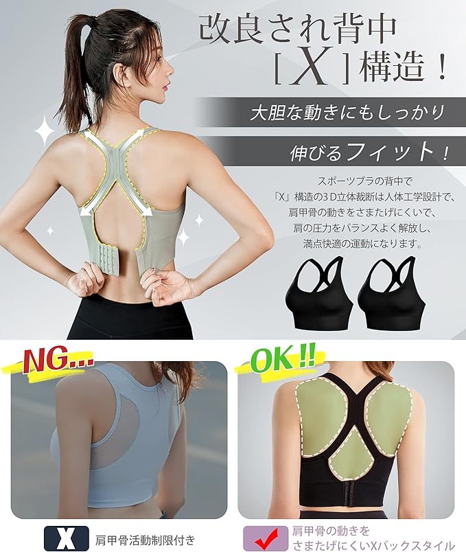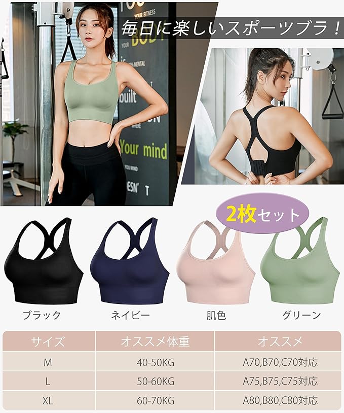 [Lavento] 【2枚セット】 スポーツブラ 揺れない 【改良され背中[✕]構造・驚くべき安定感】 ブラジャー スポーツブラジャー ヨガブラ ノンワイヤー
