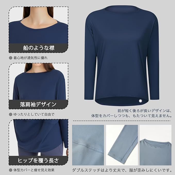 [IRCOLVE] ヨガウェア トップス 長袖tシャツ レディース ピラティス ロングtシャツ 春秋 スポーツ ランニング ジムウェア ラッシュガード 吸湿速乾