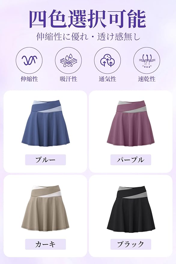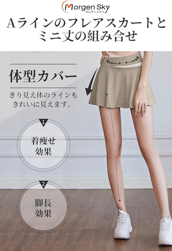 [MORGEN SKY] スカート スポーツ レディース スコート Aライン ミニスカート インナーパンツ テニス ゴルフ ジム ヨガ フィットネス トレーニング ランニング ストレッチ 通気 速乾 MQ005