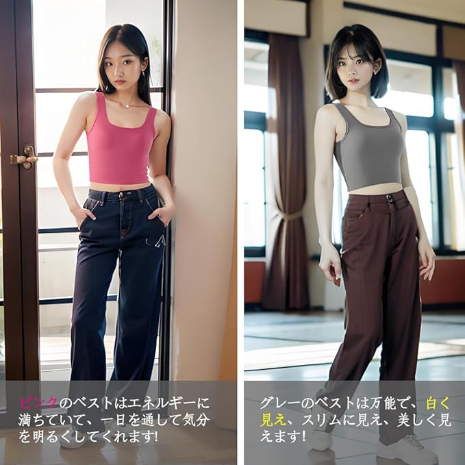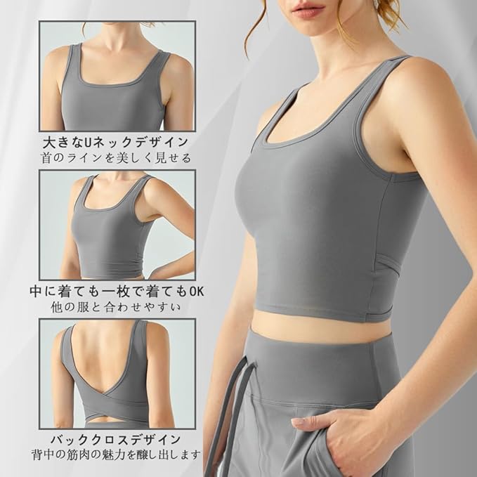 [Siomlana] スポーツブラ レディース タンクトップ ヨガウェア キャミソール トップス スポーツキャミソール 揺れない カップ付き 背中開き