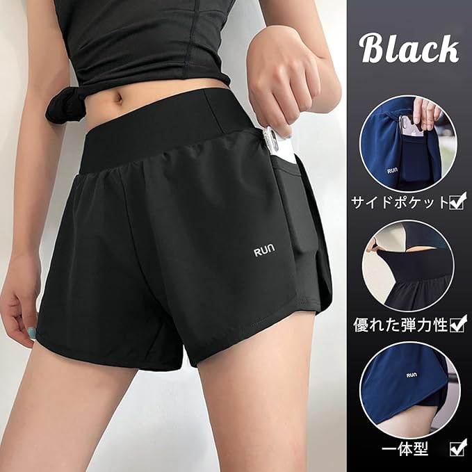 [Zleufirty] ショートパンツ レディース 短パン ランニングスポーツウェア レディース 吸汗速乾 3分丈 一体型2in1 サイドポケット フィットネス ヨガウェア ジム ヨガパンツ ジョガーパンツ 部屋着 通気 快適