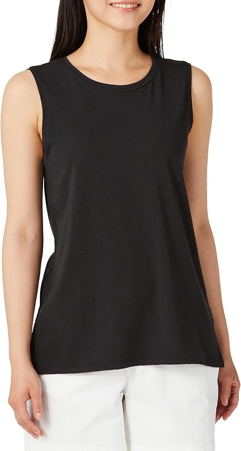 Amazonブランド - ヨガスタジオなど用に作られたこの多用途ノースリーブタンクは、優れたカバー範囲を提供し、どこにでも持ち運べるように設計されています。