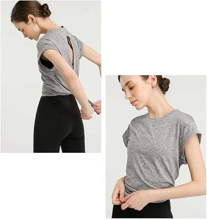 [Cloudstop] ヨガウェア レディース トップス 半袖 ヨガ フィットネス シャツ 吸汗速乾 背中開き ストレッチ 美背ヨガシャツ スポーツウェア