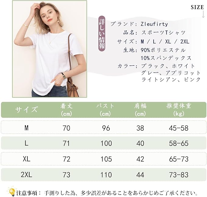 [Zleufirty] Tシャツ レディース 半袖 接触冷感 トップス 春夏秋 ヨガ tシャツ トップス シンプル ロング丈 ストレッチ 吸水 速乾 消臭 体型カバー ゆったり スポーツウェア レディース おしゃれ