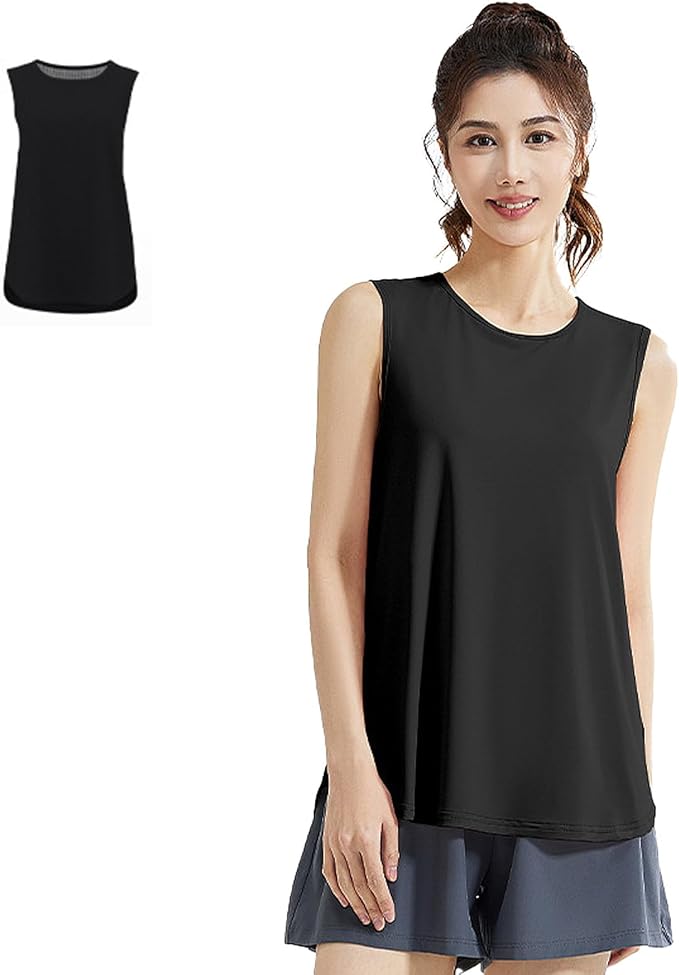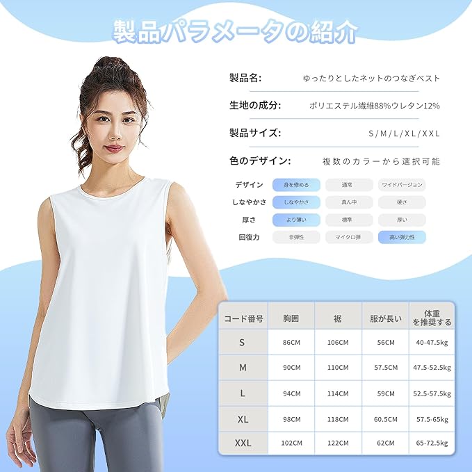 [YbiOK] ノースリーブ レディース タンクトップ – ヨガウェアとして最適な快適性とスタイル 伸縮性のあるメッシュ速乾フィットネストレーニングボディシェーピング