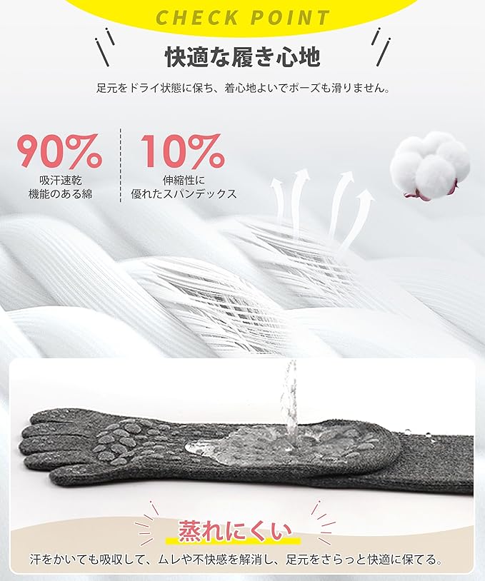 [YUMISS] ヨガソックス 滑り止め 5本指 ヨガソックス ピラティス靴下【通気性のよい綿素材・指先が自由に動き】 ヨガ靴下 レディース 快適 抗菌消臭 蒸れにくい 冷房対策 22.5cm~25cm スポーツウェア ヨガ ピラティス トレーニング スポーツ | A GEN STORE