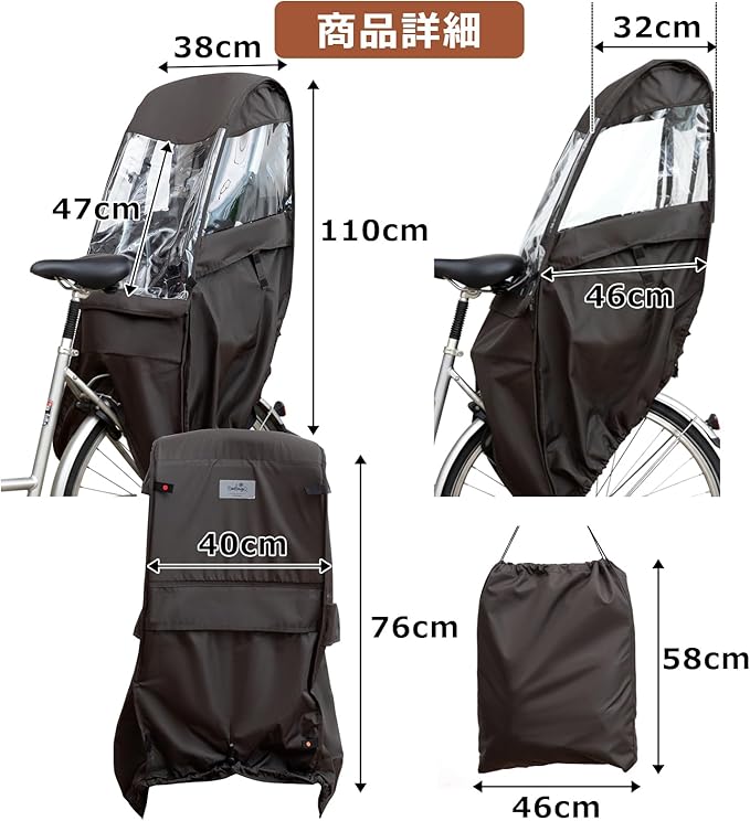 Qucover 自転車 チャイルドシートレインカバー 後ろ 子供乗せ 自転車カバー 撥水加工 厚手で耐久性アップ 広々空間 乗り降り簡単 防寒 雨よけ 収納バッグ付