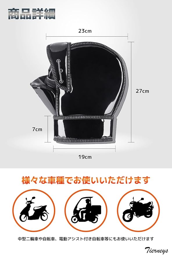 [ティアニーズ]バイクグローブ ハンドルカバー 自転車ハンドルカバー 防寒 防水 防風 対策 スクーター 自転車 PUレザー製 (黒)